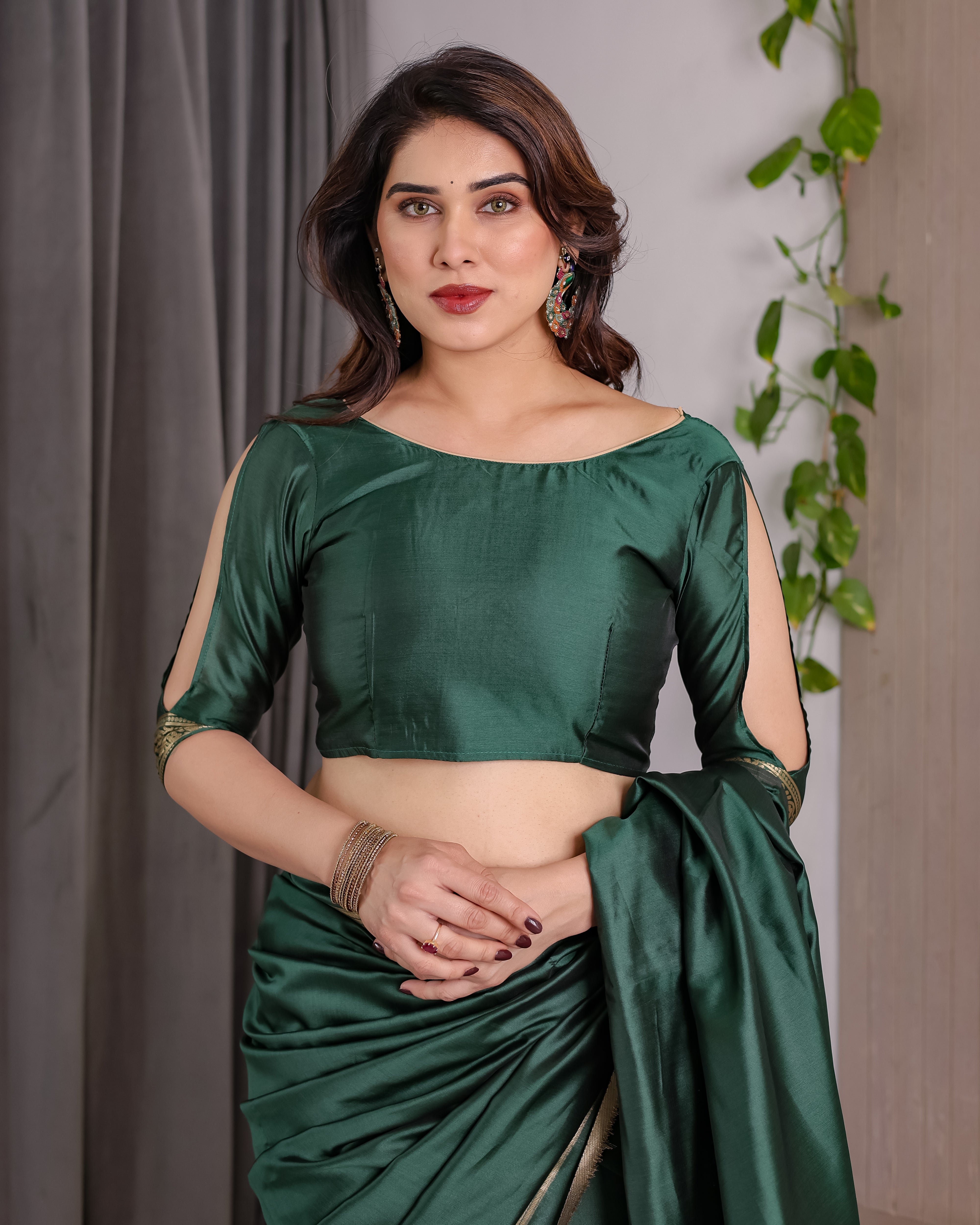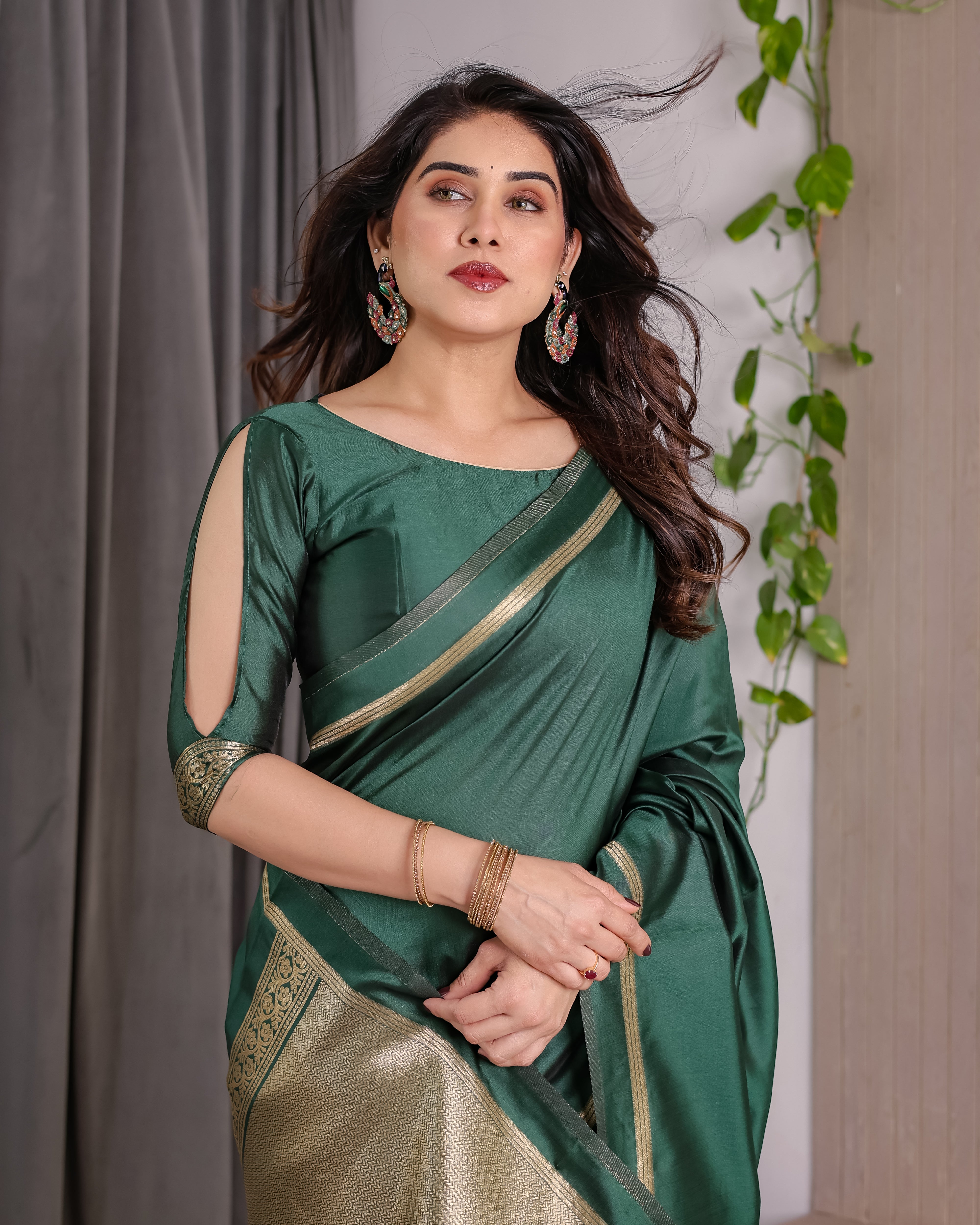 Emerald Green Soft Kanjivaram Silk Saree with Golden Zari Border & Rich Pallu | 5.5m Saree + 0.8m Blouse Piece